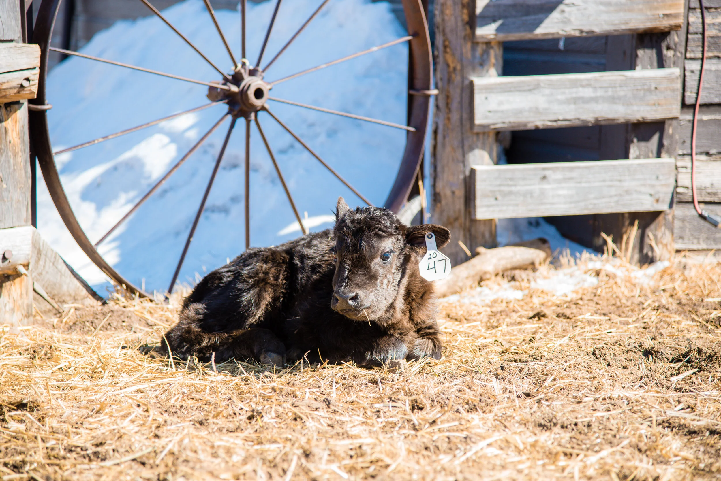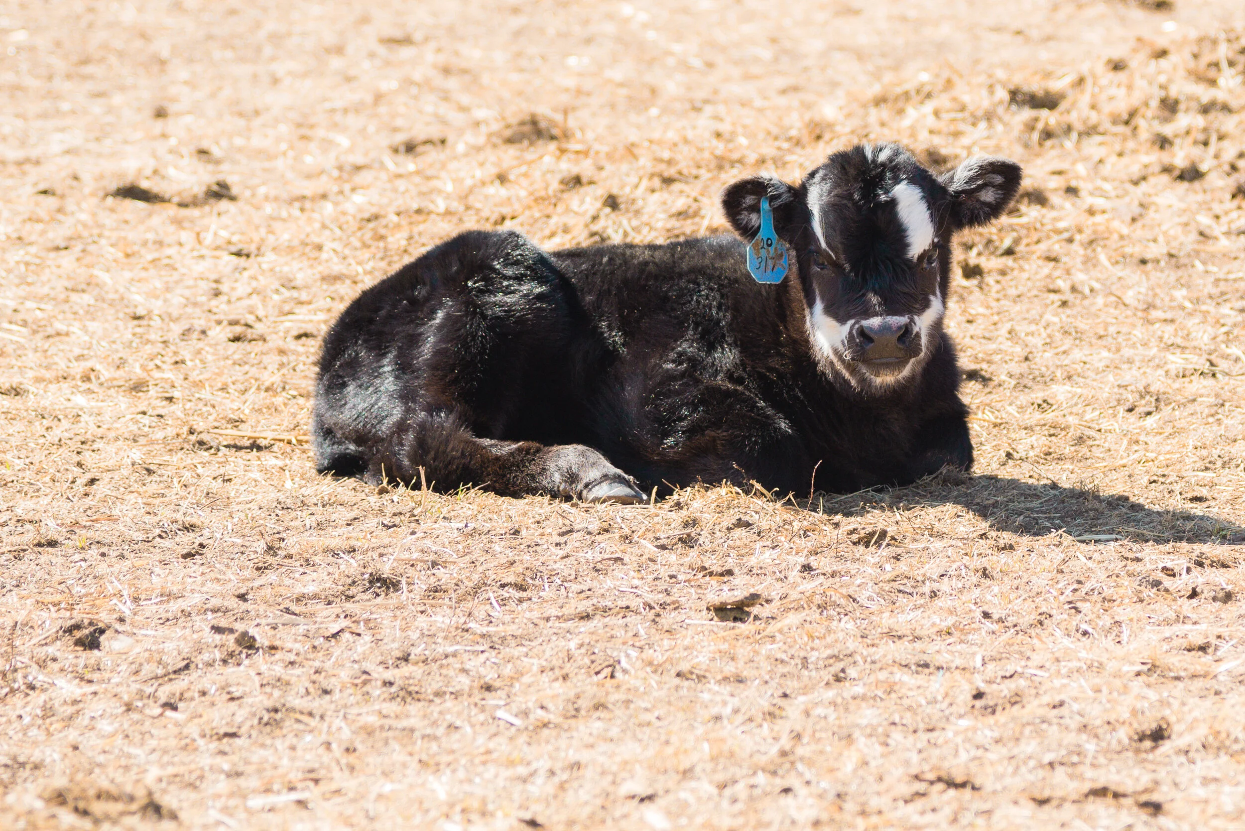 Spring is calving season at Witcher’s. Walking past the ranch in April you’ll pass by skittish calves, not yet used to seeing humans. These little guys are born with the ability to walk within an hour or two. See the little black calf below on the left, getting a nudge from its mother to get up and stand for the first time.