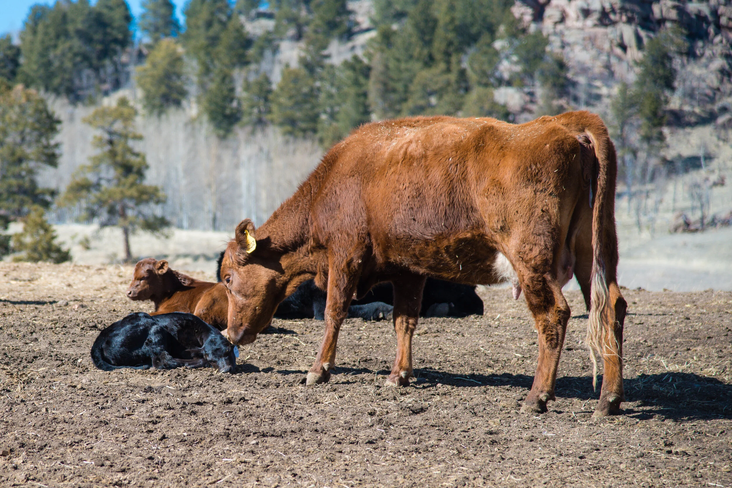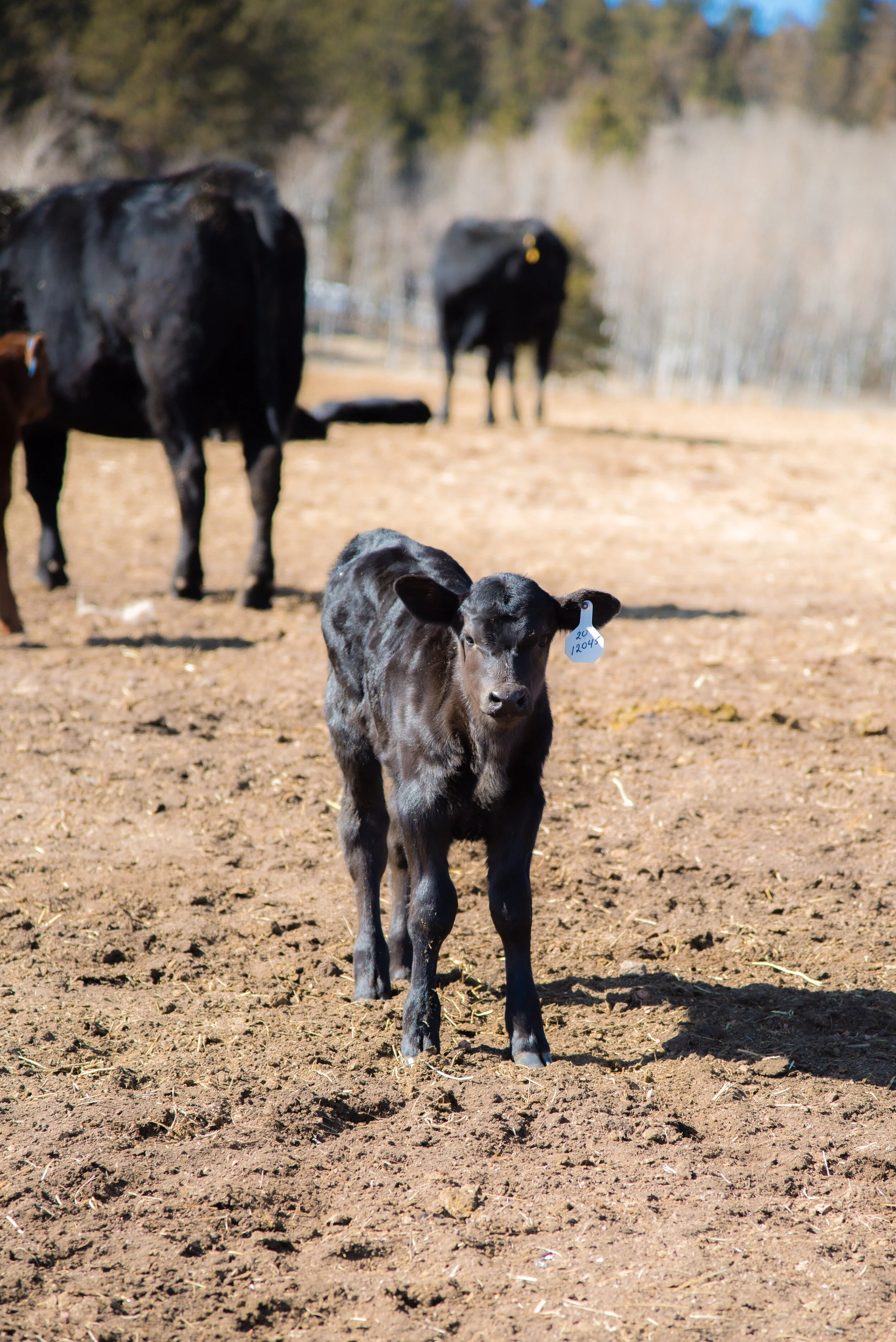 Our Ranch Manager, Eric, keeps a close eye on pregnant cows in the days before a birth. When a new calf is born, he brings the baby and its mother into the pasture by ranch house so he can put the identification ear tag onto the new calf. He then watches the two closely — experienced mothers know how to care for their babies expertly, but new mothers don’t yet have their mothering skills perfected. The calf should get cleaned off by their mother and then nudged into standing for the first time. The calf will try to stand under its mother to milk, and the mother must be very careful not to step on her clumsy baby!